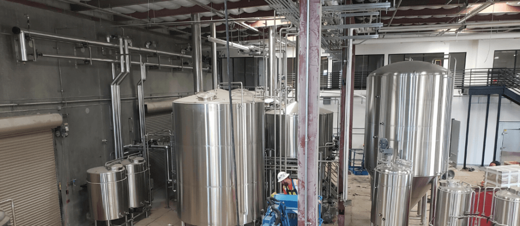 Mark III’s scope of work included the framing and buildout of a 2-story wood mezzanine with a metal stair case and hand rail for New Glory Craft Brewing. The mechanical scope included the installation of (1) rooftop HVAC unit, (1) ductless mini split, (3) exhaust fans, and (2) warehouse heaters. The electrical scope of work included a full electrical upgrade and power to all brewing equipment and lights. The plumbing scope included running a new gas line from the meter to the boilers, running a new water line to the water heater and sinks, the installation of multiple sinks throughout the brewery, and new compressed airlines throughout the warehouse area. Our team was responsible for decommissioning (2) existing chiller units and relocating (1) existing pro-chiller evaporator. Additionally, our team performed coring 18 ft down for (9) different structural concrete piers to support their grain silos. The metal stairs and pipe bridge were prefabricated in our MEP Manufacturing Facility and delivered to site for installation. The gas pipe was also prefabricated to allow for more efficient installation.